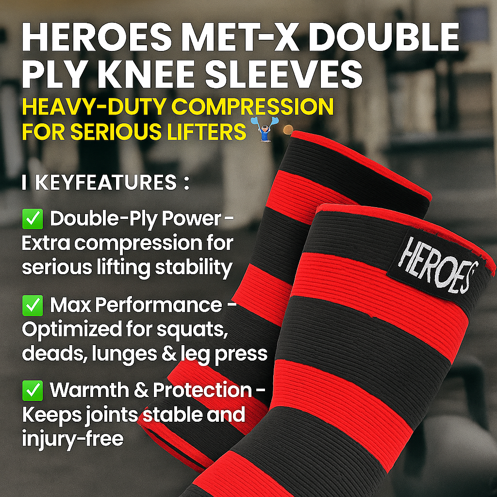 Heroes MET-X Double Ply Knee Sleeves – Heavy-Duty Compression Support for Squats, Deadlifts & Powerlifting